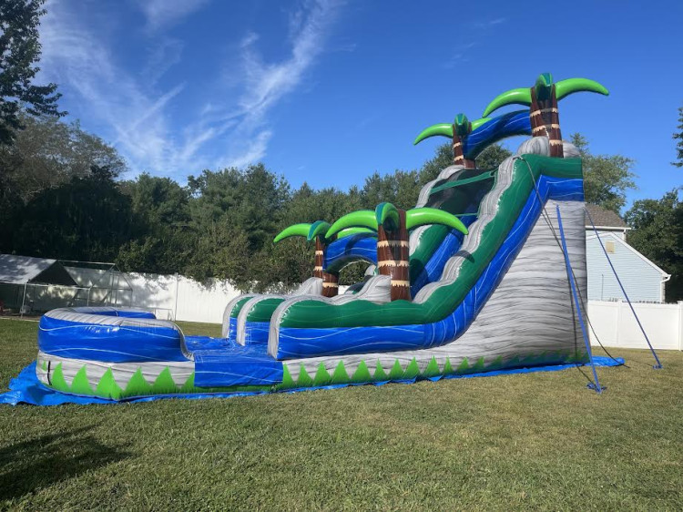 • ๐ด 18-Foot Tall Tropical Slide – A bright island-themed centerpiece for any party